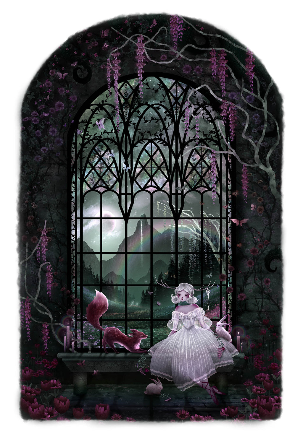I hope that you’ll follow my cherished troupe of macabre princesses & their ghoulish friends across castle-dotted landscapes set abloom.