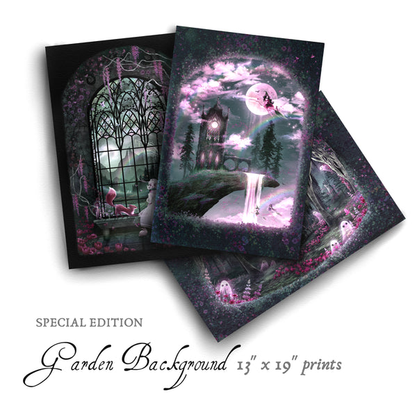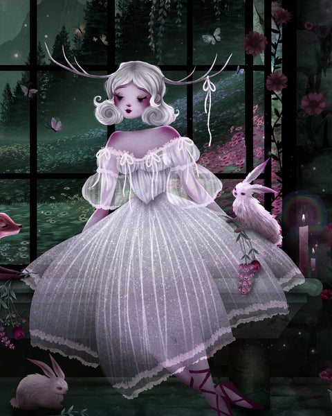 13"x19" Print of my original painting "Princess Asha's Window", with special edition "Garden Background", available ONLY in this size and on canvas.